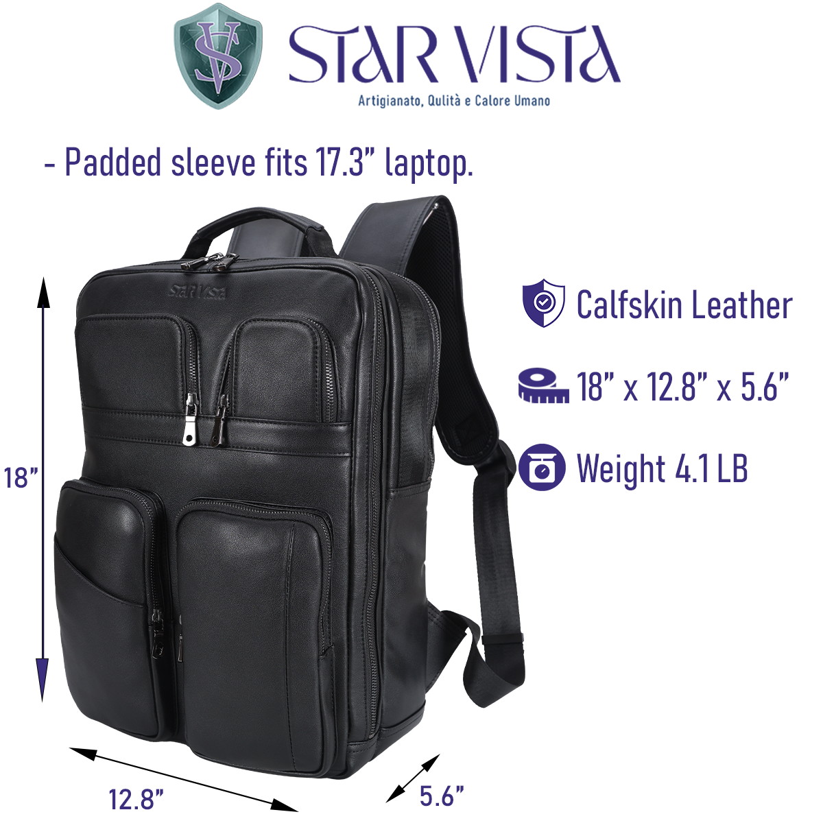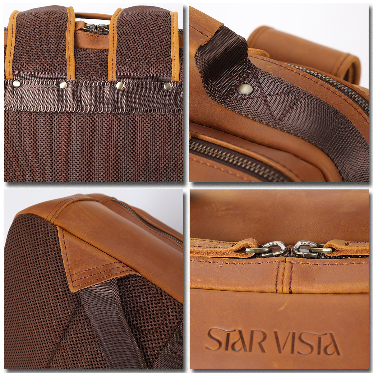 - QUALITY CONSTRUCTION -- Crafted with full grain cowhide leather sourced from premium pastures, tanned with natural plant extracts, this STAR VISTA backpack is built to last with a elegantly vintage look and feel perfect for outdoor hiking, camping, daily commute or business travel. YKK zippers along with other heavy duty hardware ensure the backpack's durability in its everyday use for many years to come.